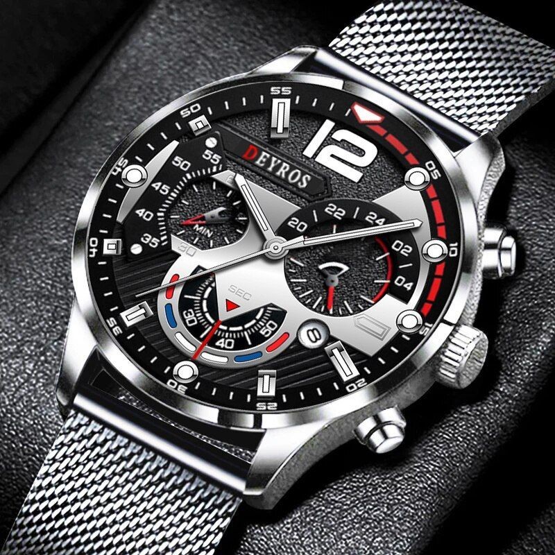 2023 Fashion Mens Business Watches Luxury Stainless Steel Mesh Belt Quartz Wrist Watch Luminous Clock Men Casual Calendar Watch