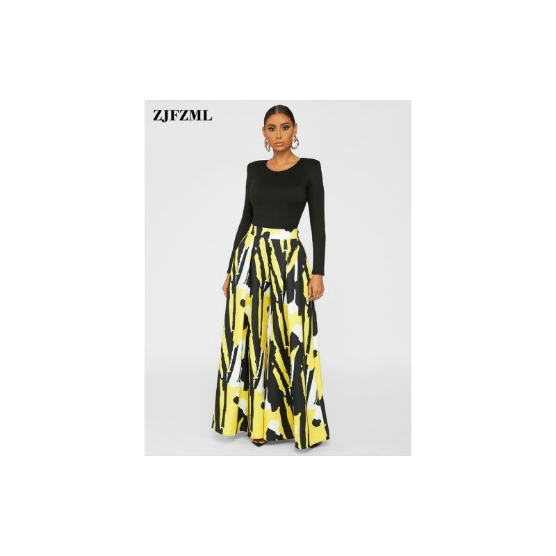 Black White Zebra Striped Wide Leg Long Pant Ladies High Waisted Side Pocket Straight Trouser Summer Autumn Floor Length Palazzo
