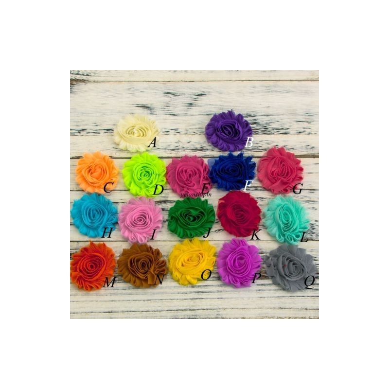 10db/tétel 2,6" 15 színű Fashion Chic kopott sifon virágok kopott szövet virágok hajcsat hajkiegészítők fejpánthoz