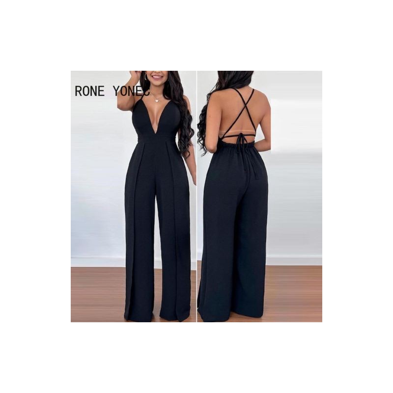 2023, női, masszív, szexi kötőfék, Criss Cross, hát nélküli, mély V nyakú, szexi egyenes lábú jumpsuit
