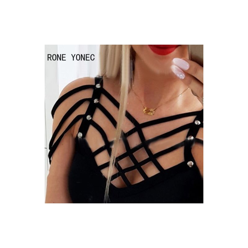 Elegáns, szexi, tömör, üreges, keresztes, ujjatlan női nyári Camis fekete Crop felsők