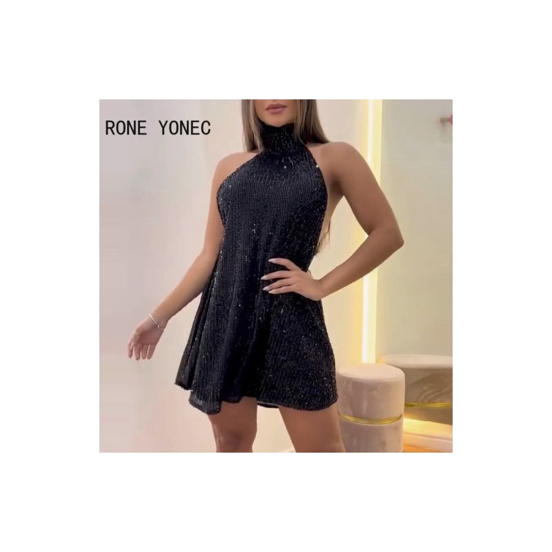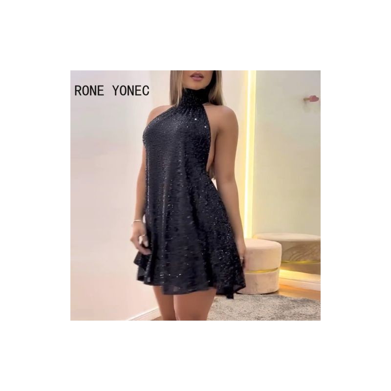 Női elegáns flitterek, kötőfék, ujjatlan szexi fűzős mini A-vonalú Bodycon partiruhák