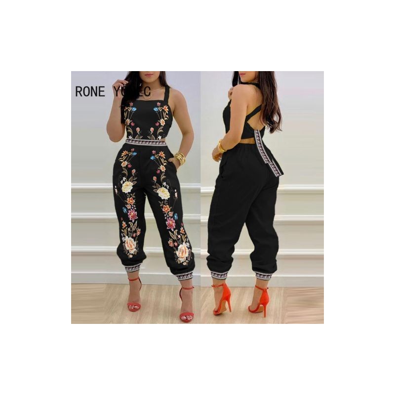 Women Outfit Jumpsuits 2023 Floral Print Crisscross Tied Detail Backless Jumpsuit