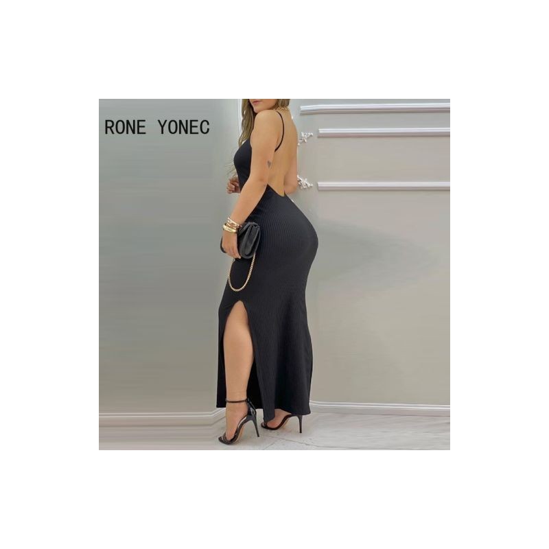 Női spagettipántos hát nélküli hasított bordás ruha Maxi ruha alkalmi ruha vakációs ruha 2021-hez