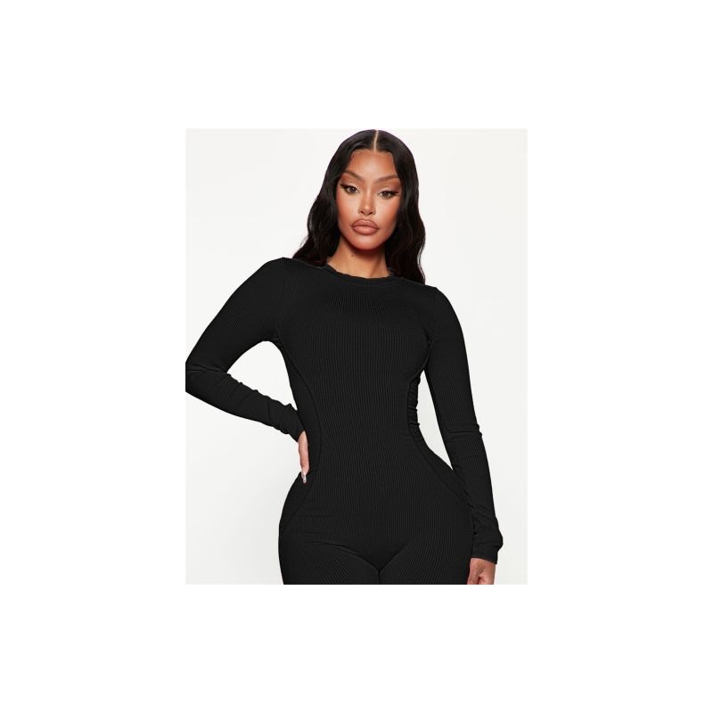 Akaily őszi barna bordás kombiné, női rövid, egyrészes fitneszruhák 2022 O nyakú, hosszú ujjú fekete Bodycon nadrág női