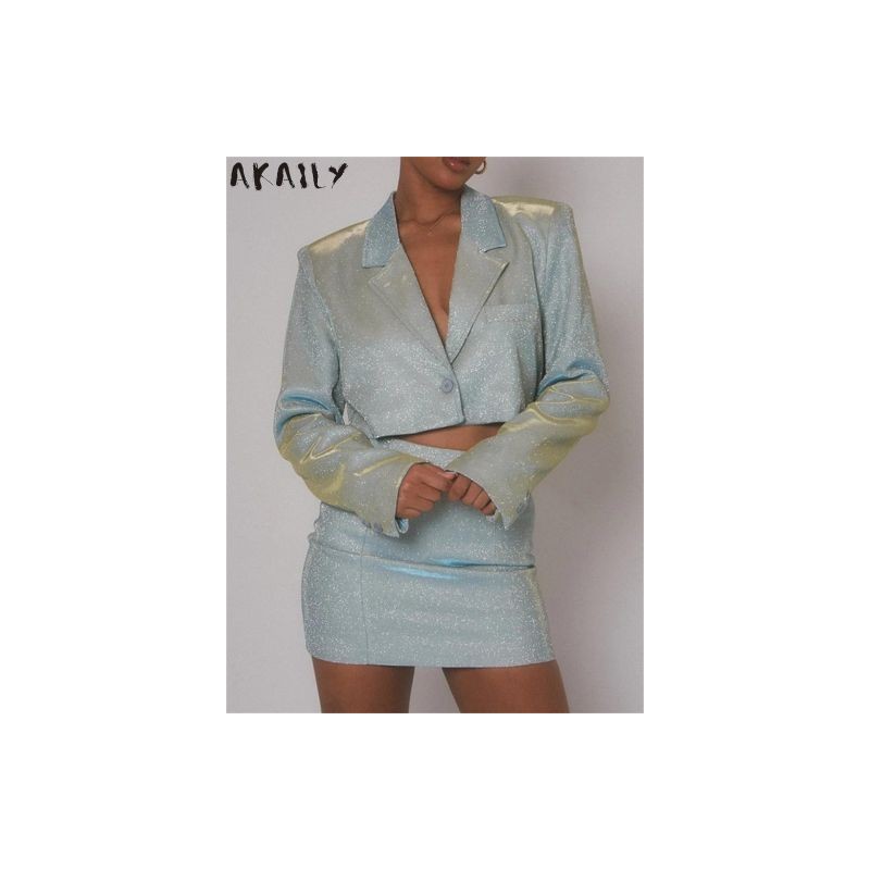 Akaily őszi téli fekete 2 részes ruhakészletek női alkalmi ruhák 2022 V nyakú, hosszú ujjú blézer és mini szoknya szettek női