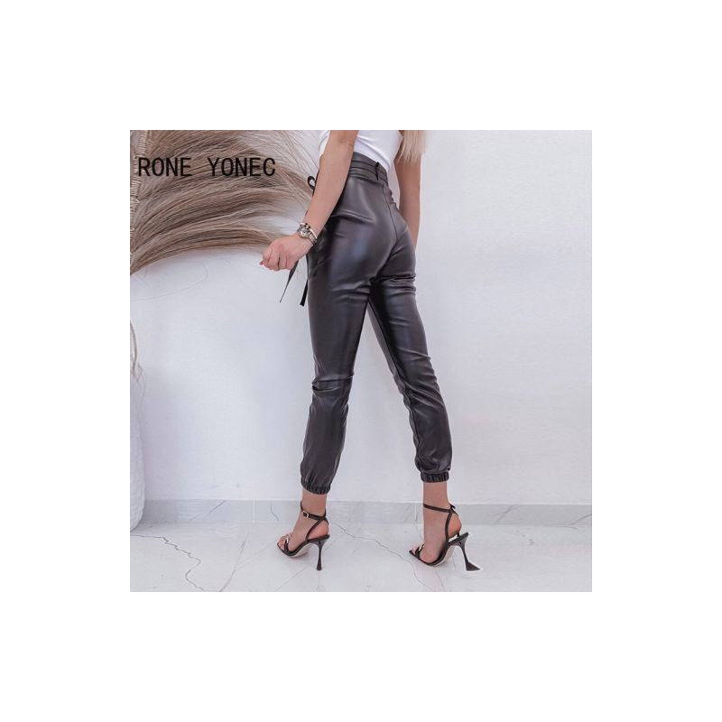 Női elegáns PU bőr övvel foltozott alkalmi cipzárral vékony, bokáig érő fekete ceruzanadrág