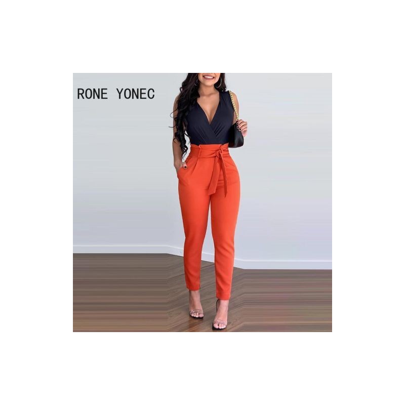 Női öltözék 2023-as, ujjatlan, mélyülő nyakú body- és öves nadrágkészlet, kétrészes készletek