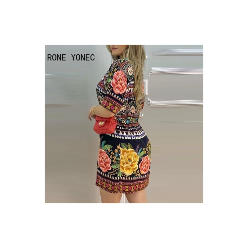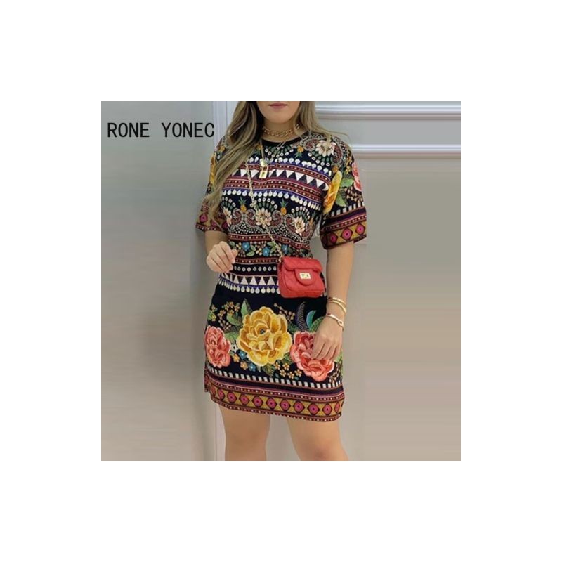 Női trópusi mintás rövid ujjú alkalmi ruha Alkalmi mini ruha vakációs ruha 2021-re