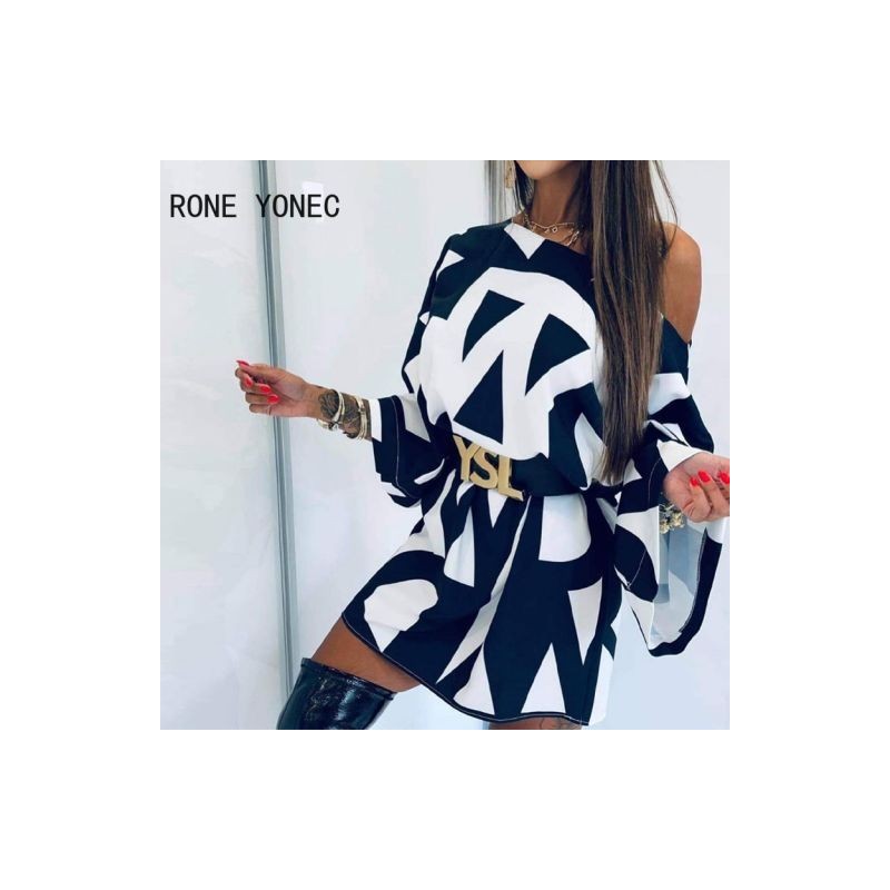 Női egy váll csengő ujjú absztrakt nyomtatási ruha