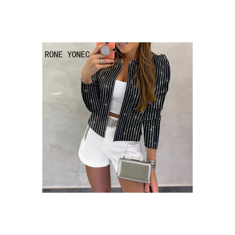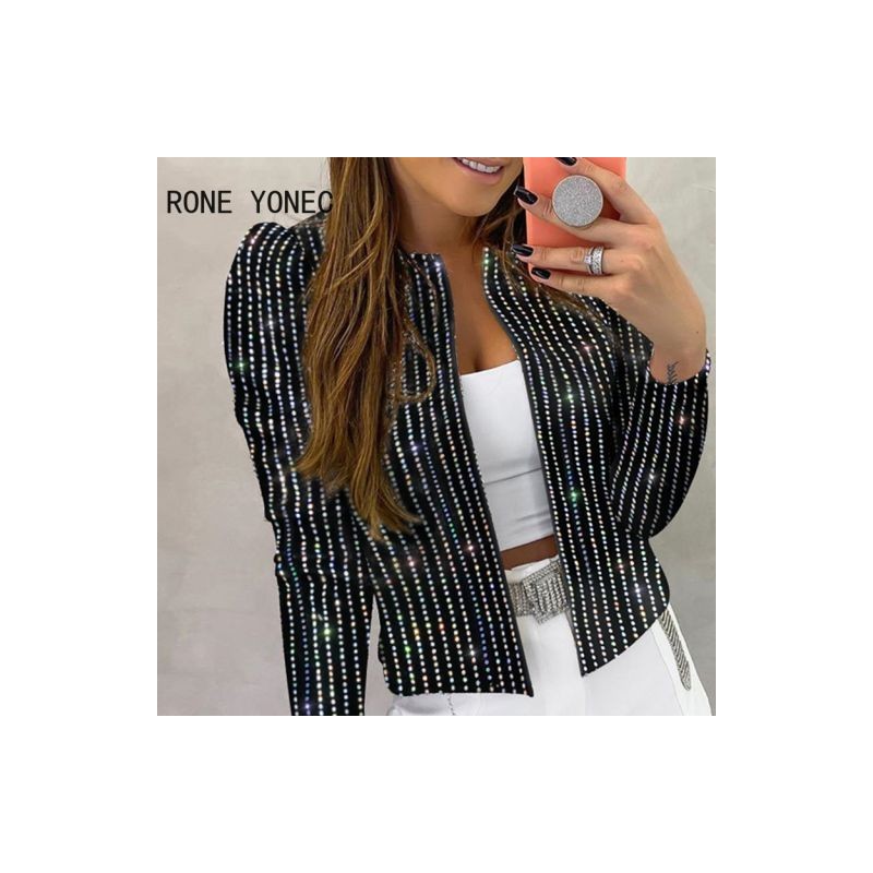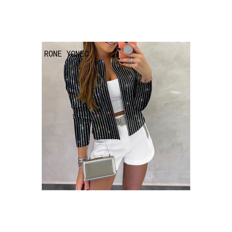 Női elegáns, csíkos, hosszú ujjú flitterek, kontrasztos flitteres hosszú ujjú dzsekik és kabátok