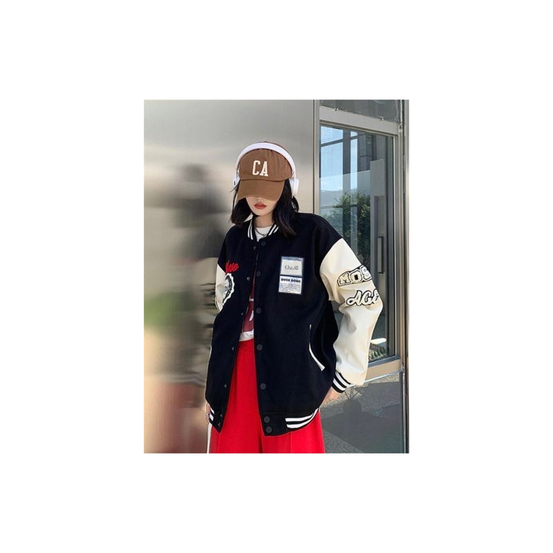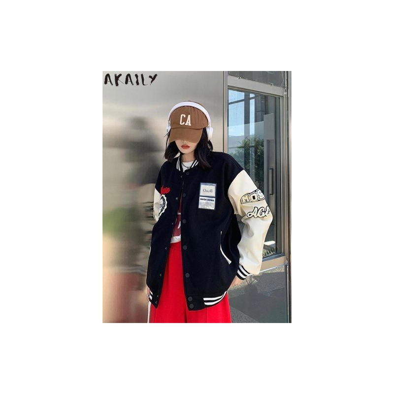Akaily Fall Streetwear Jacket For Women 2022 Long Sleeve Tops Jackets Female Patchwork Casual Pu Leather Coats Varsity Jackets