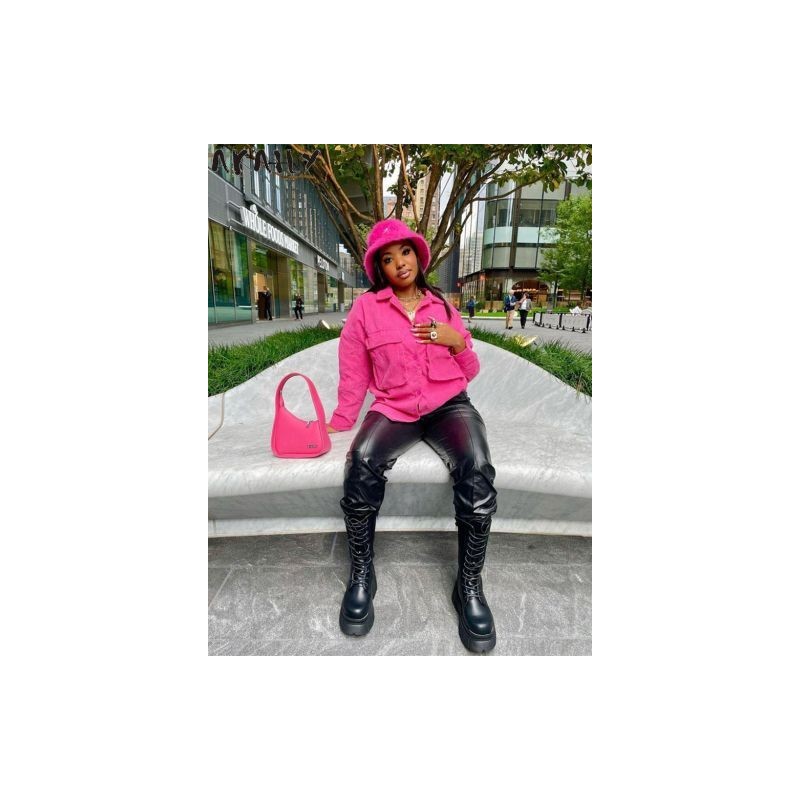 Akaily őszi rózsaszín kordbársony ingek blúzok női divat 2022 fekete zsebek hosszú ujjú felsők Női alkalmi vintage ingek