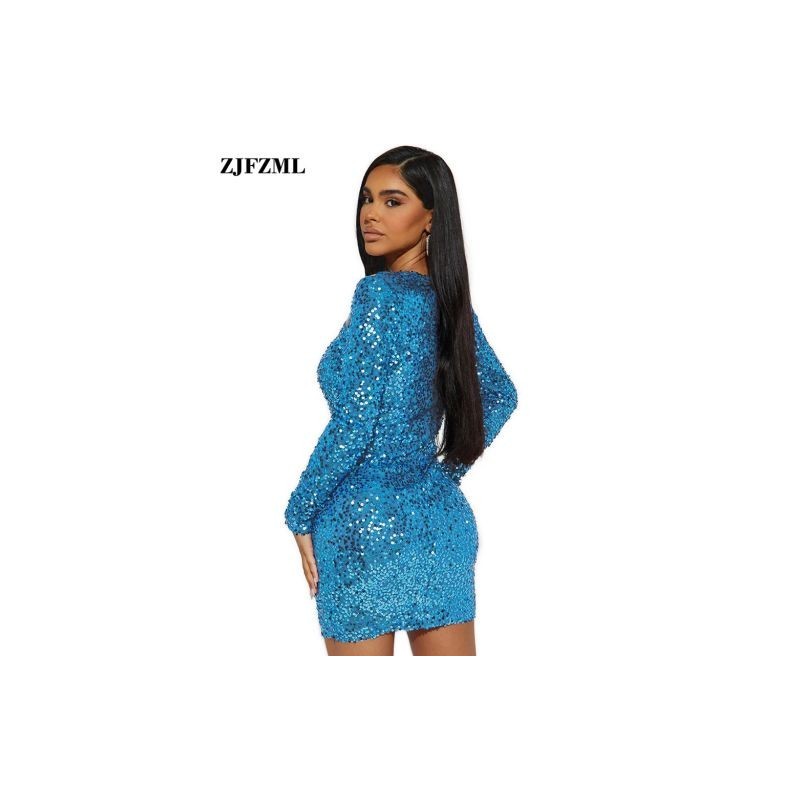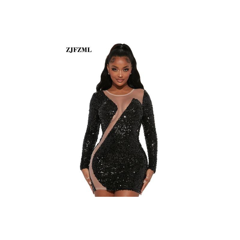 Lenyűgöző női hálós patchwork Bodycon flitteres ruha Szexi kerek nyakú, hosszú ujjú átlátszó esti buli Clubwear Night Vestidos