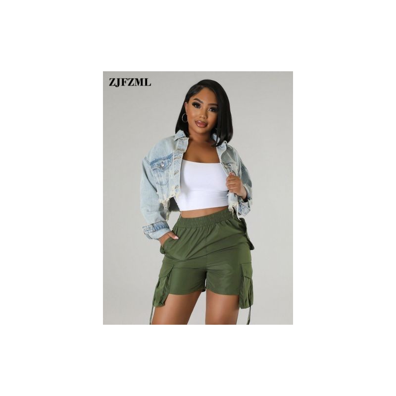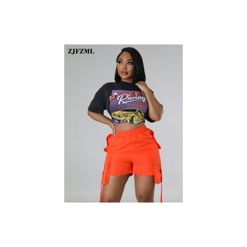 Moto Biker Cool Girls Elastic High Waist Cargo Shorts with 6 Side Pockets Casual Fashion Tummy Control Out Going Workout Shorts