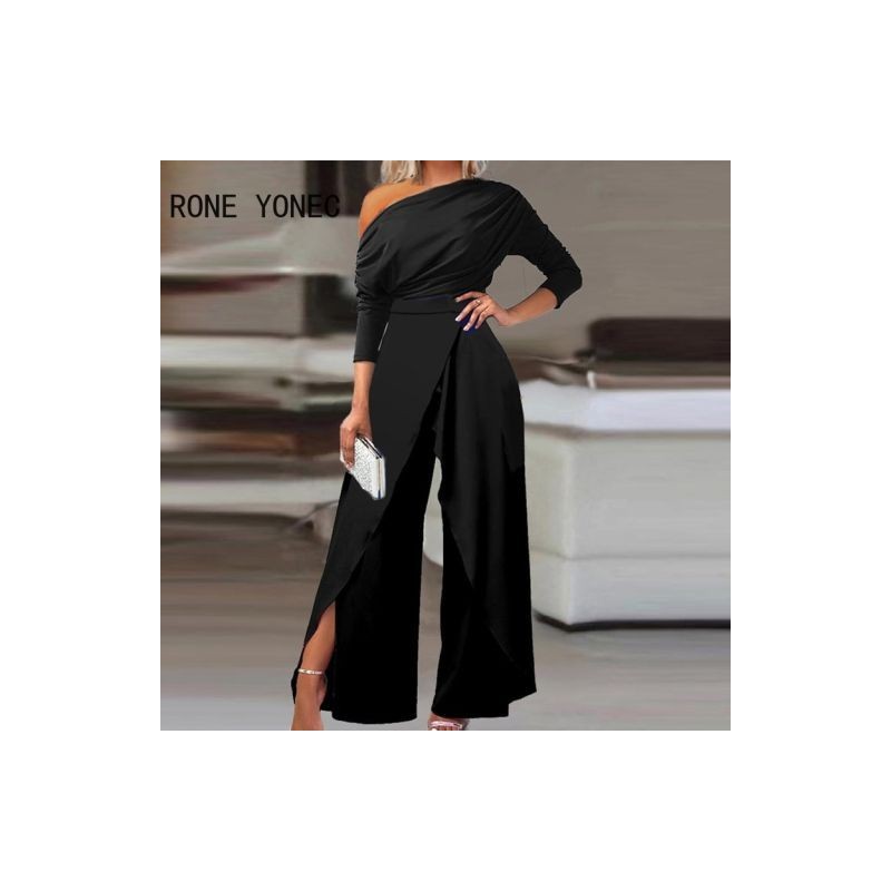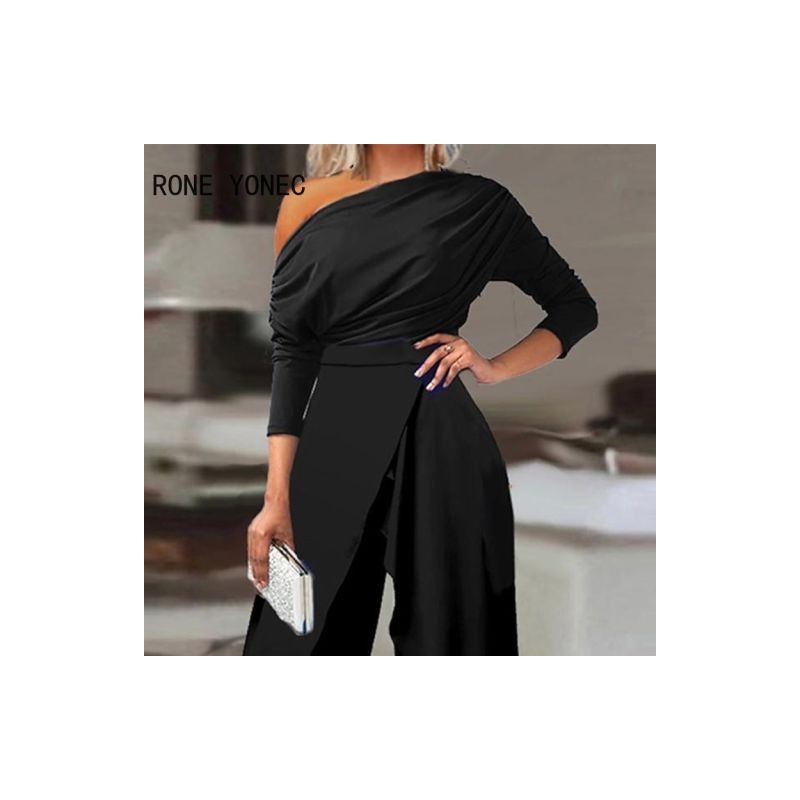 Női outfit Ruched Cold Shoulder Split Hem széles lábú jumpsuit