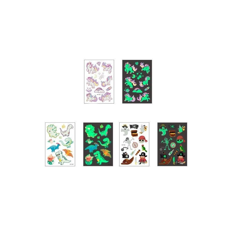 Luminous Tattoo Stickers Waterproof Temporary Fake Tattoos Glow Paste on Face Arm Leg for Children Body Art Dinosaur Beauty Fish Horn Horse Sticker
