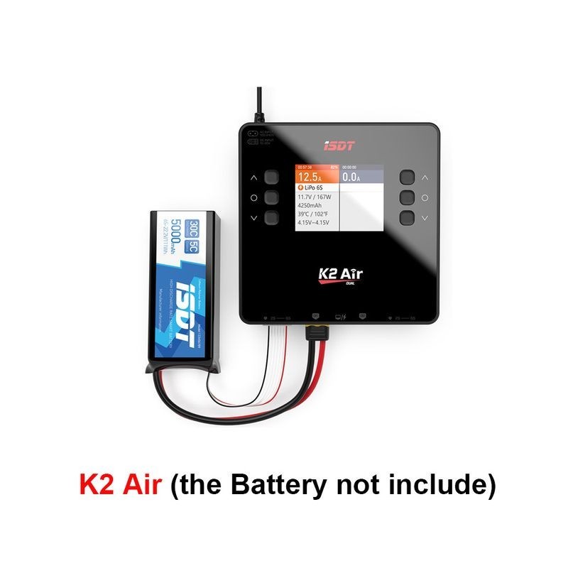 ISDT K2 Air AC 200W DC 500Wx2 20A Dual Channel Balance Lipo Charger Kisütő Lipo NiMh Pb Battery Rc modellhez / Okostelefonhoz