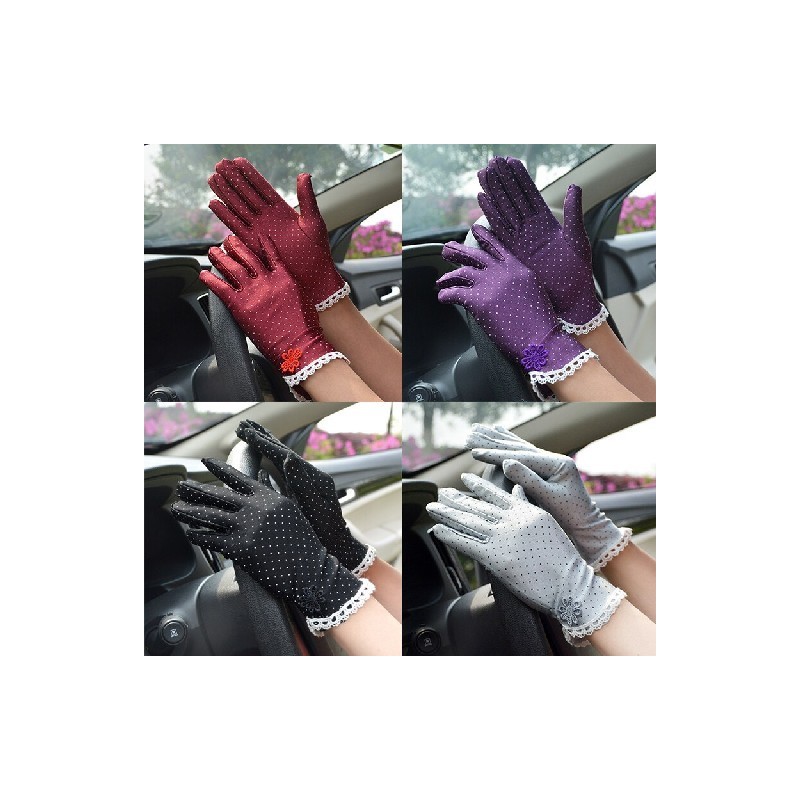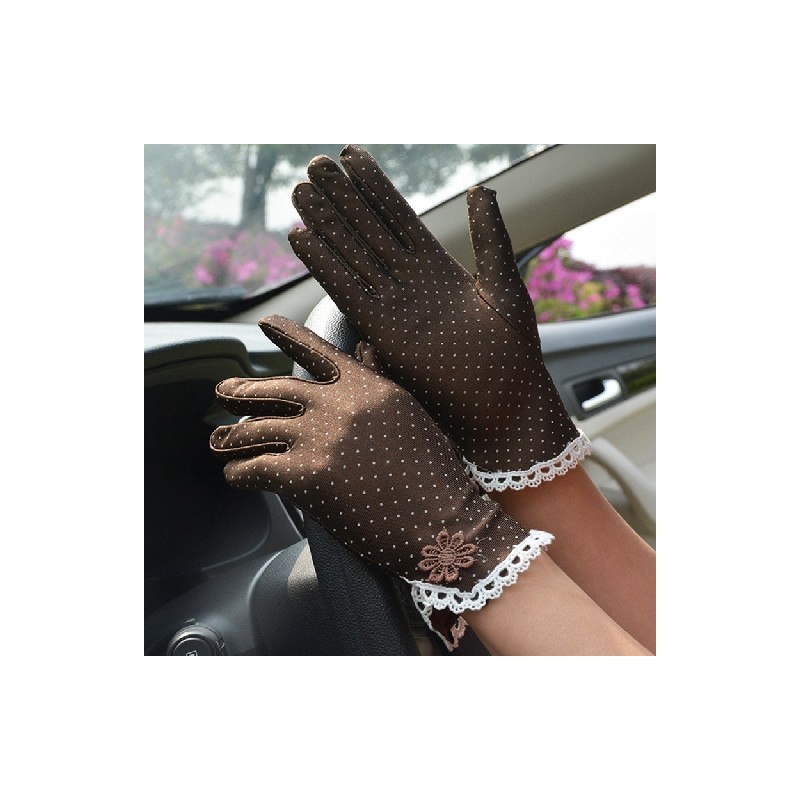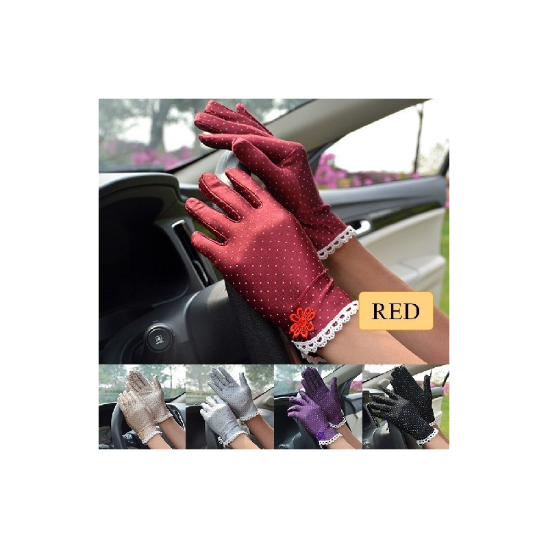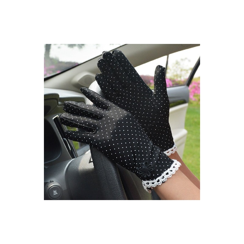 Women Gloves For Summer Sunscreen Driving Gloves Guantes Small Dots Lace Patchwork Short Gloves Touchscreen Breathable Mittens