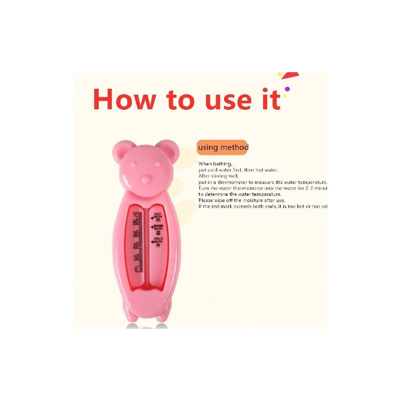 How to use: Put the water thermometer in the bathtub before washing, and when it reaches the right temperature, check whether the temperature is right with your hands before putting the baby in the bath. Please wipe off the water after using this product. This section is mainly used for measuring water temperature