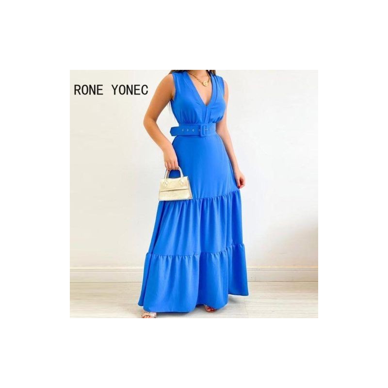 Elegáns, szexi, mély V nyakú, masszív női övekkel, fodrokkal Maxi szexi alkalmi ruhák