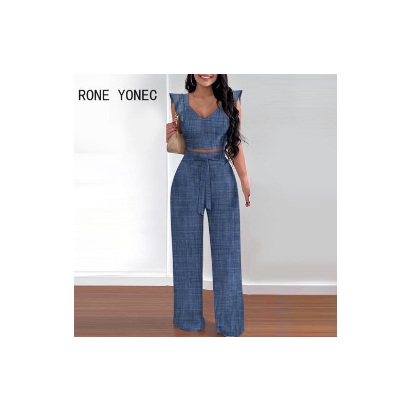 Női alkalmi repülő ujjú, redős fűzős, magas rugalmas derékú, egyenes lábú nadrágszettek