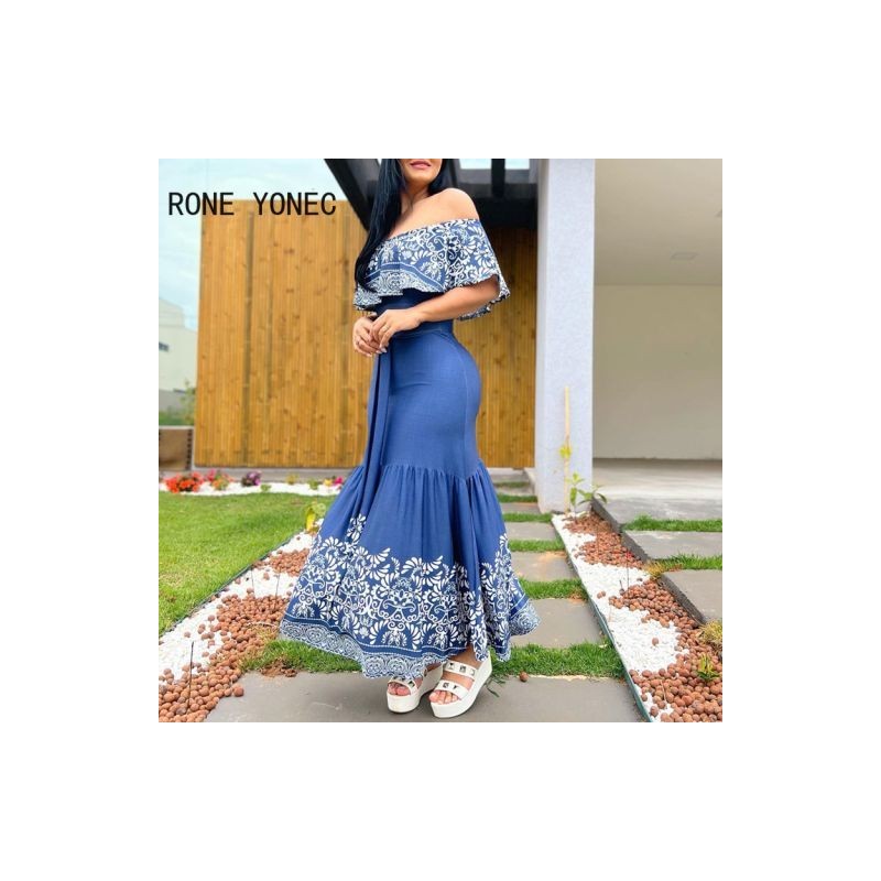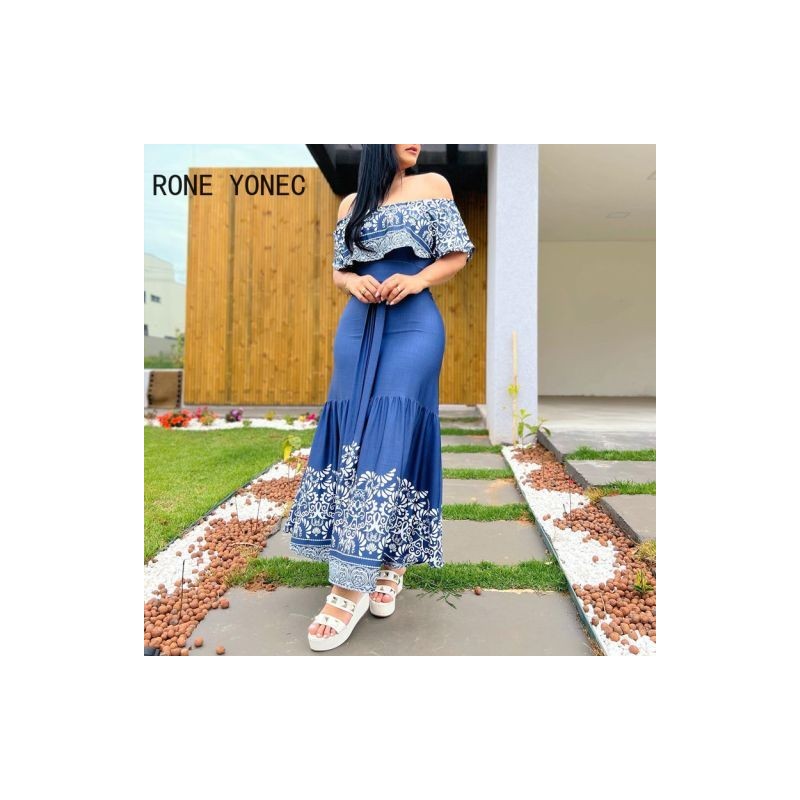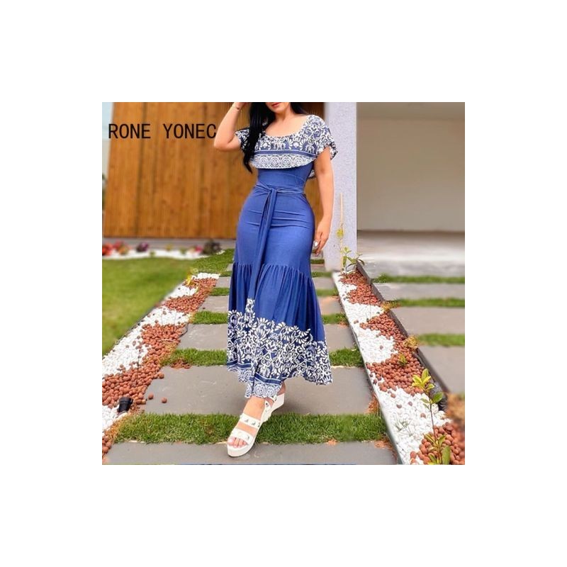 Női ruha 2023-as trópusi törzsi mintás keresztmetszetű, hát nélküli maxiruha vakációs ruhák