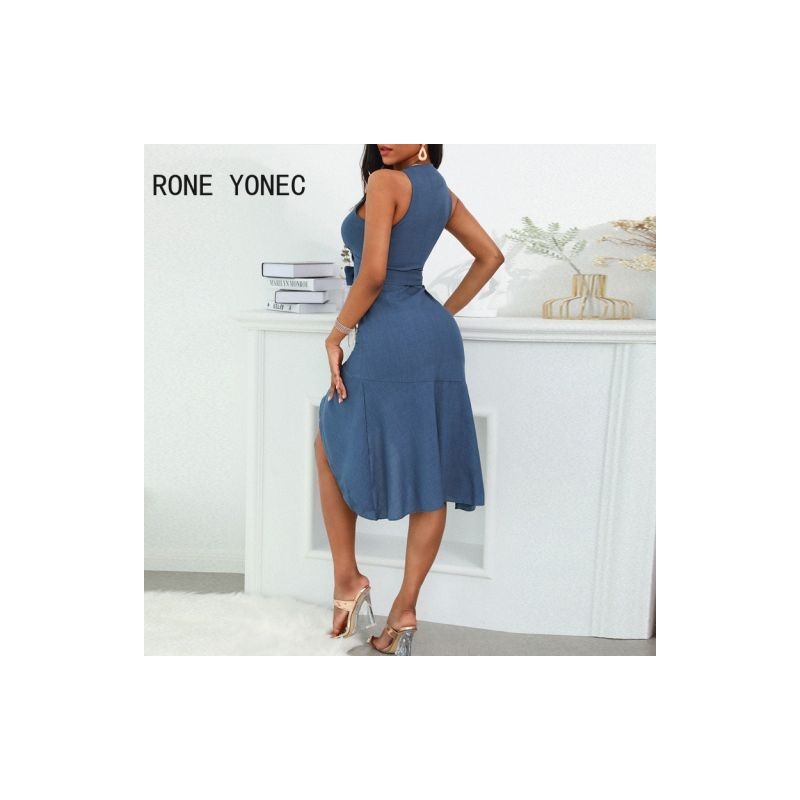 Elegáns, masszív női, ujjatlan, mély V nyakú, fodros midi munkaruhák