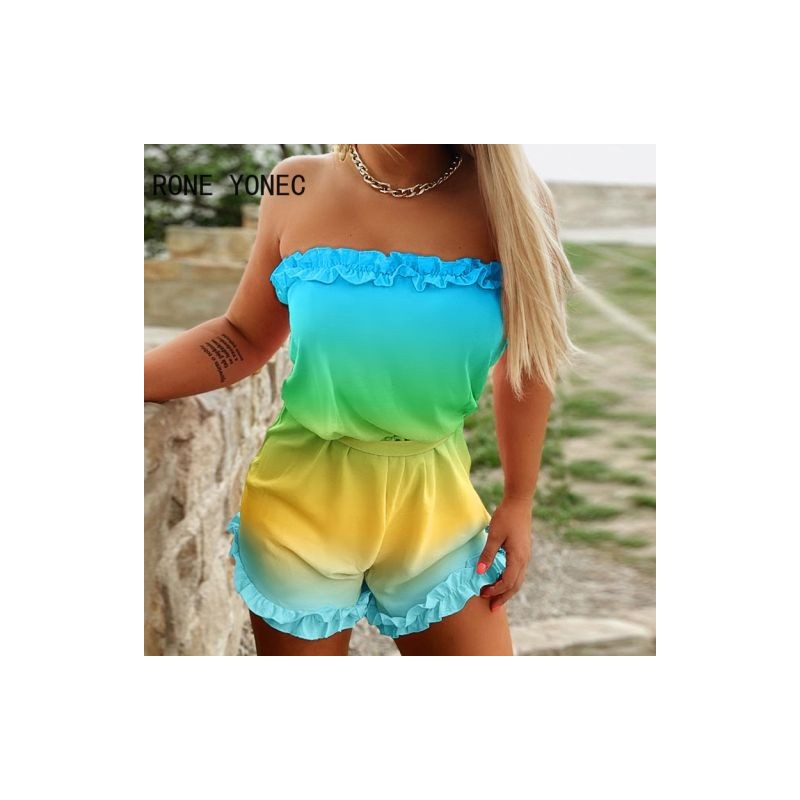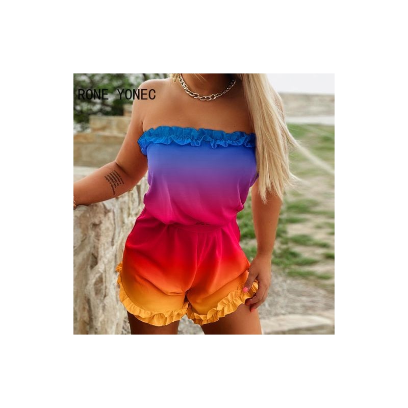 Women Chic Strapless Sleeveless Edible Tree Fungus Gradient Color with Belt Rompers