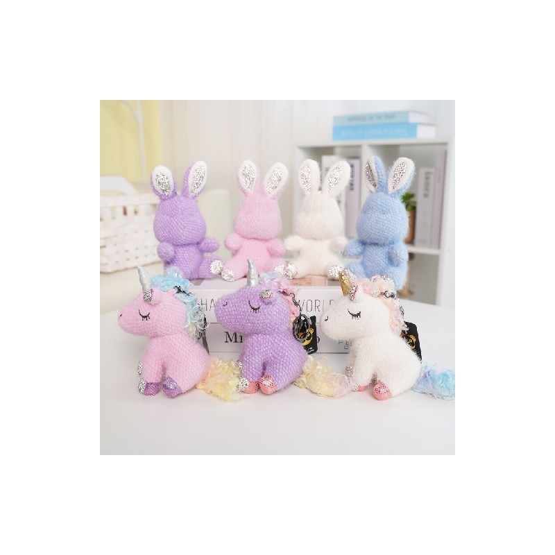 12-15cm Cute Rabbits Bear Unicorn Plush Pendant Dolls Kawaii Unicorn with Diamond Key Chain ToysStuffed Soft Birthday Decor Gift