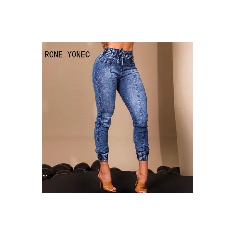 Női divat Elegáns alkalmi, világos vonalú dekoráció, húzózsinór vékony farmer, bokáig érő farmer nadrág