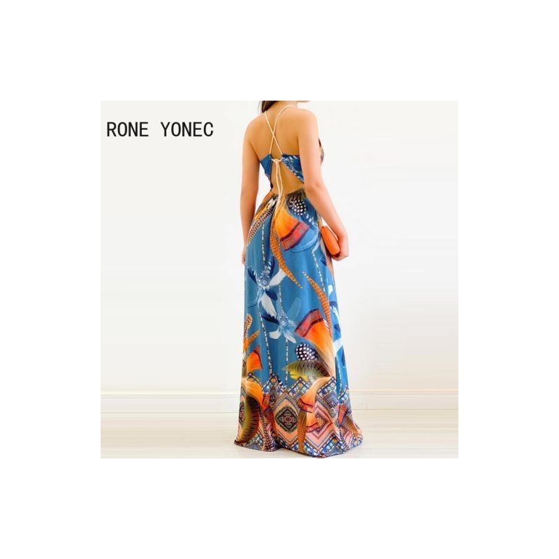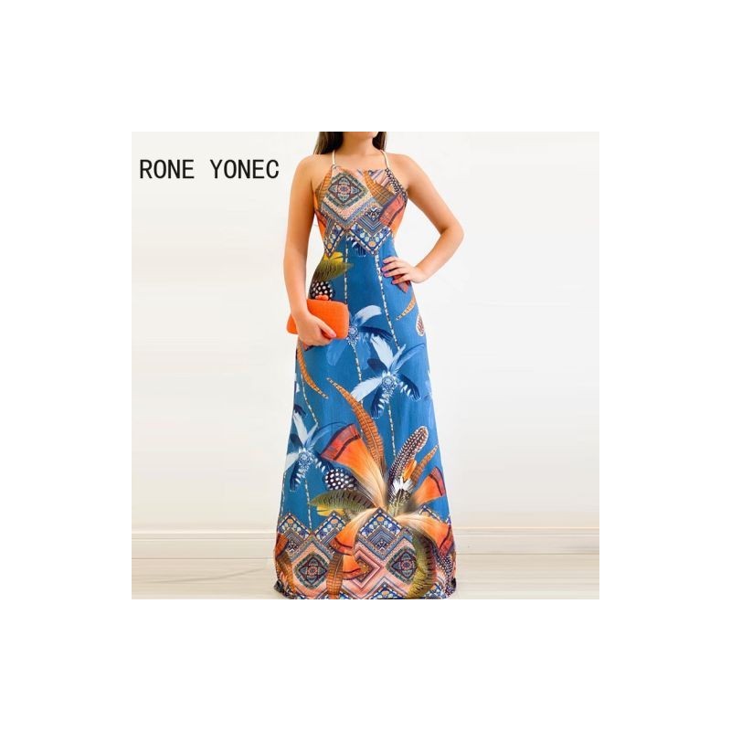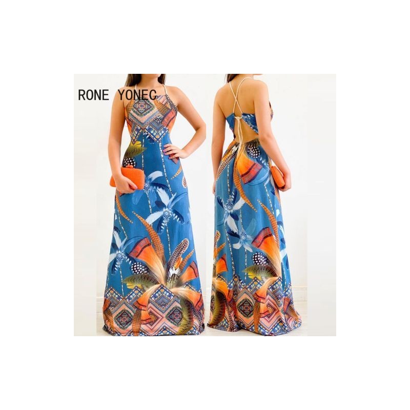 Női ruha 2023-as trópusi törzsi mintás keresztben keresztezett hát nélküli maxiruha vakációs ruhák