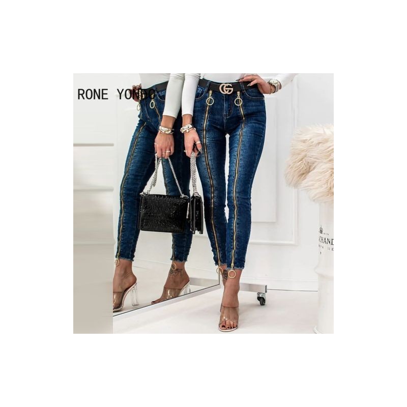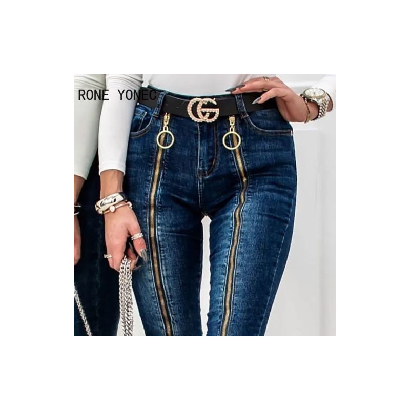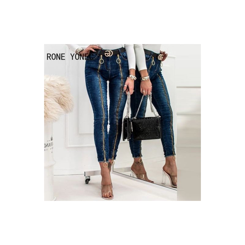 Women Solid Fashion Chic Zipper Decoration Skinny Jeans Ankle Length Denim Pants