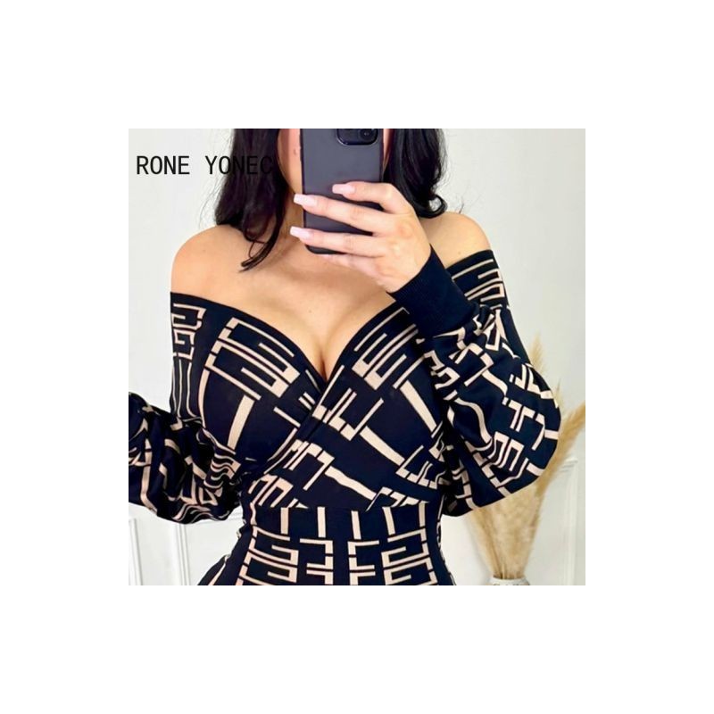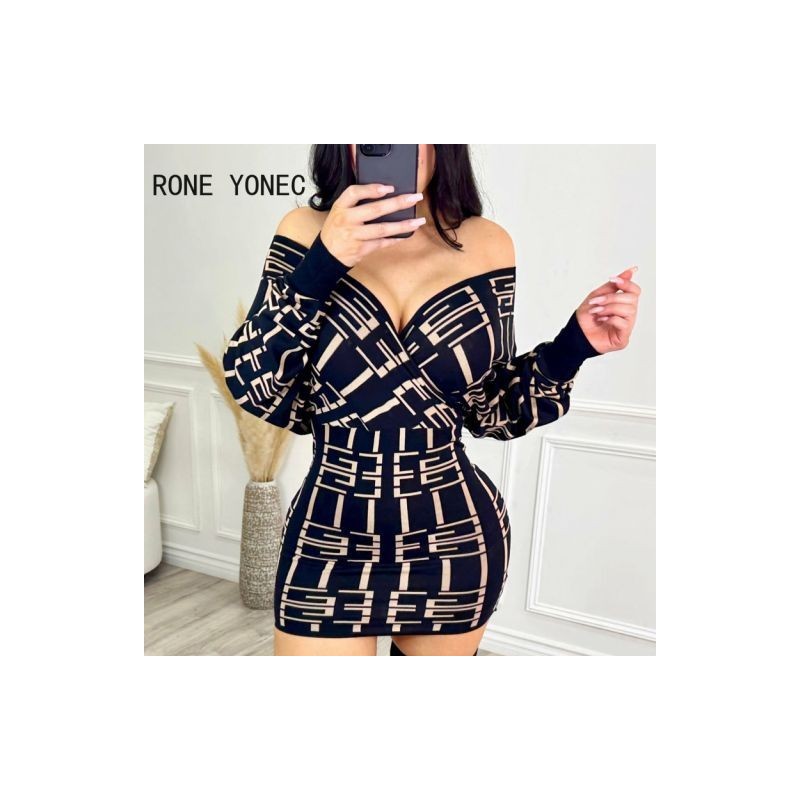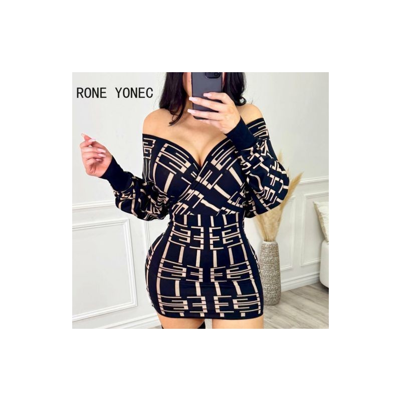 Női szexi, vállra húzott, V-nyakú, hosszú ujjú, mini Bodycon partiruhák