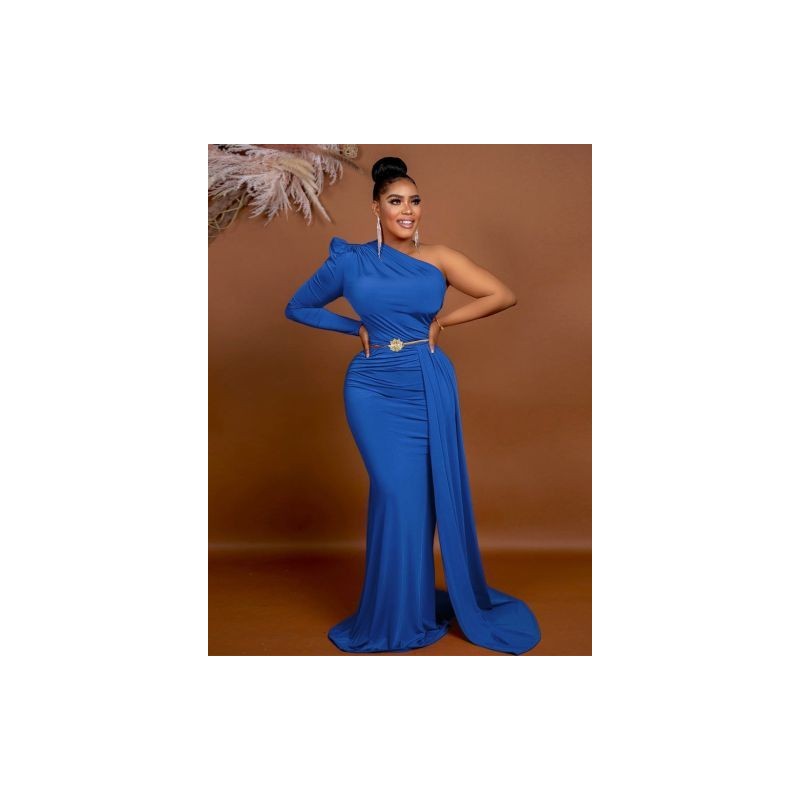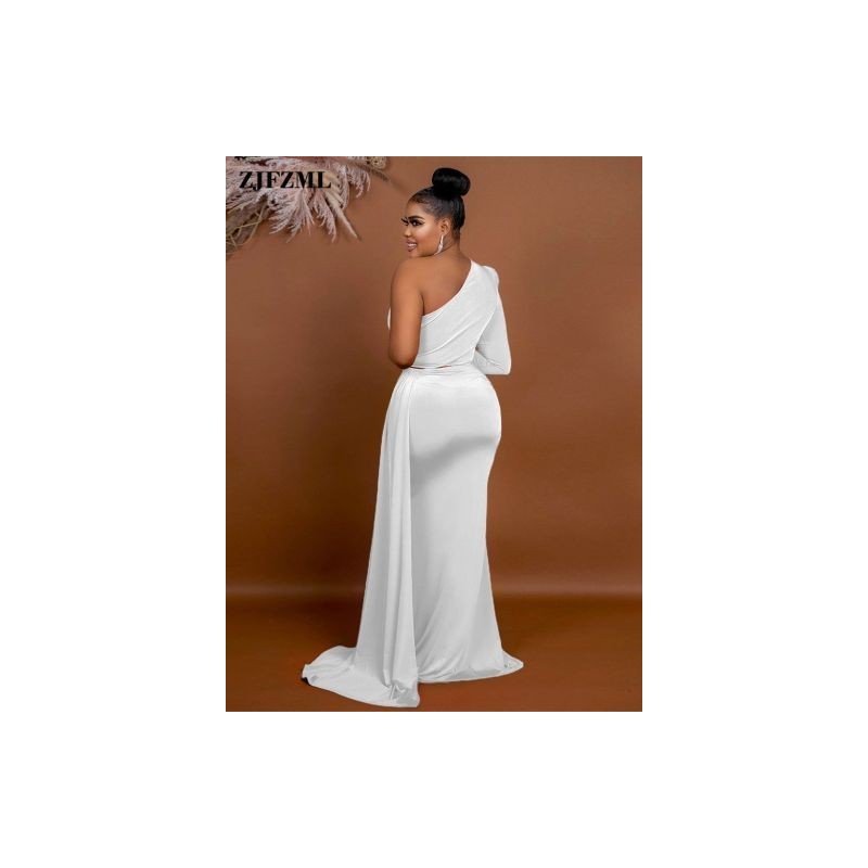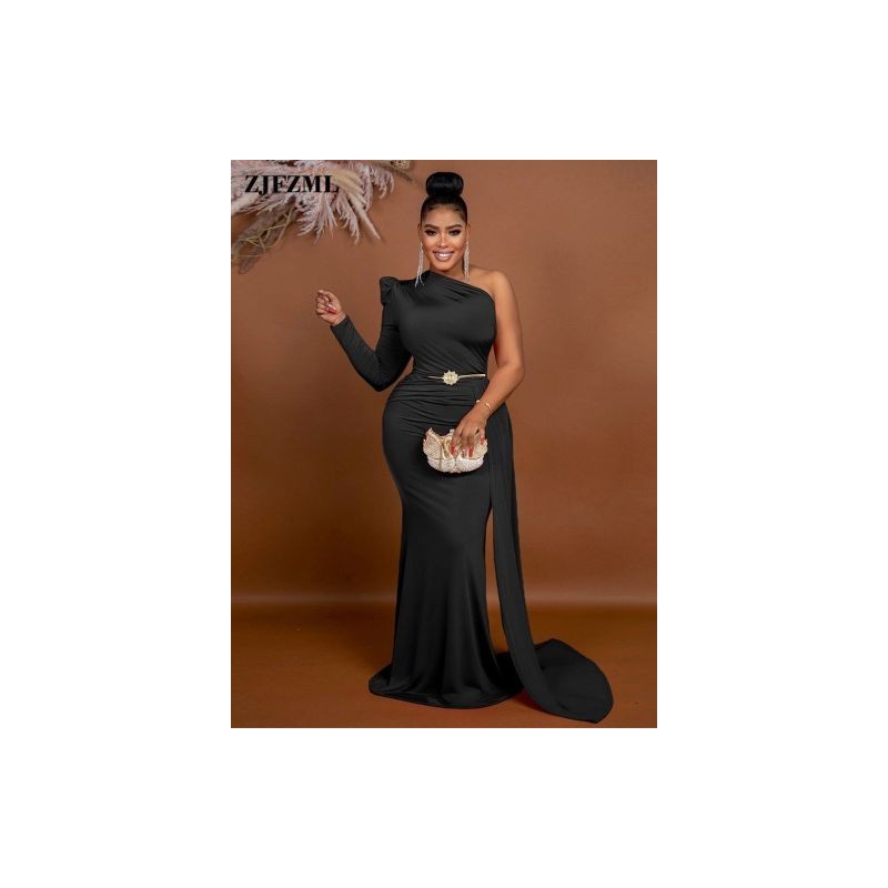 Elegant Fashion Oblique Collar Prom Mermaid Dress Women Single Long Sleeve Evening Dresses Luxury Ribbon Spliced Dance Vestidos