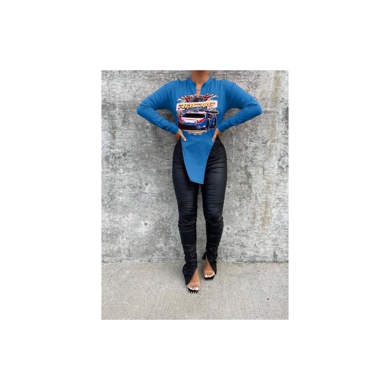 Akaily őszi fekete grafikus pólók női divatnak 2022 O nyakú, hosszú ujjú aszimmetrikus felsők Női laza alkalmi nyomtatott felsők