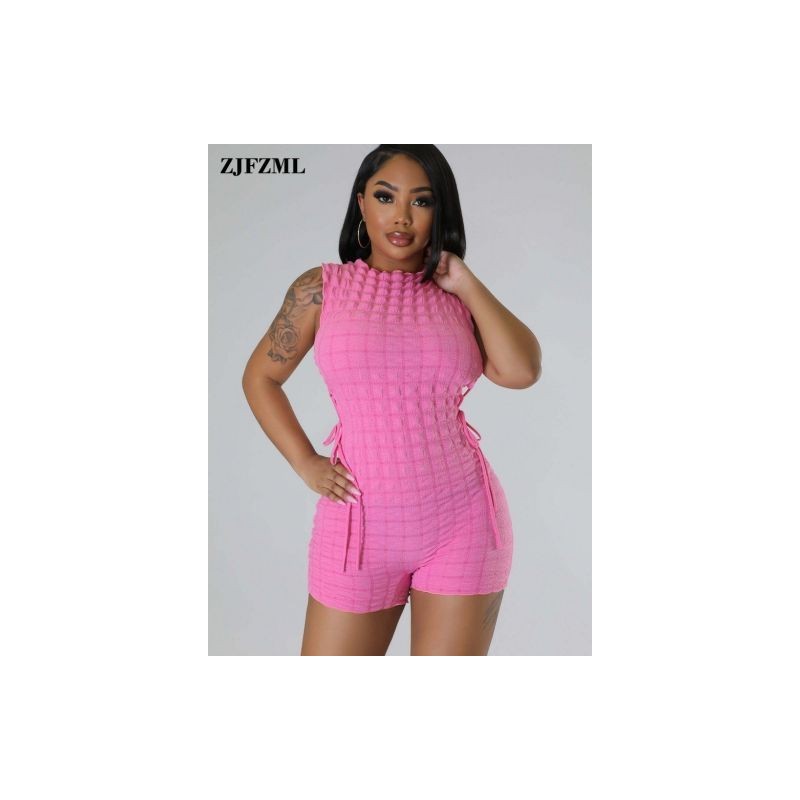 Stunning Solid Ruched Rompers Womens Playsuits Y2K Crewneck Sleeveless Side Lace Up Hollow Out One Piece Overall Party Clubwears