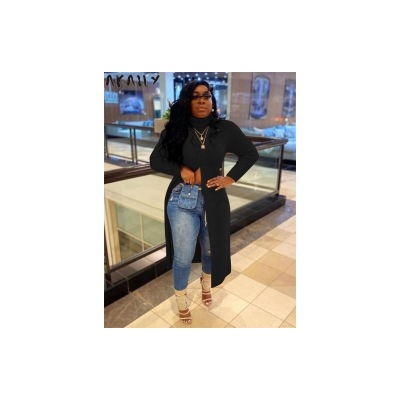 Akaily Fall Winter Knitted Sweater Women Fashion 2022 Turtleneck Long Sleeve Tees Knit Tops Female Black White Casual Sweater