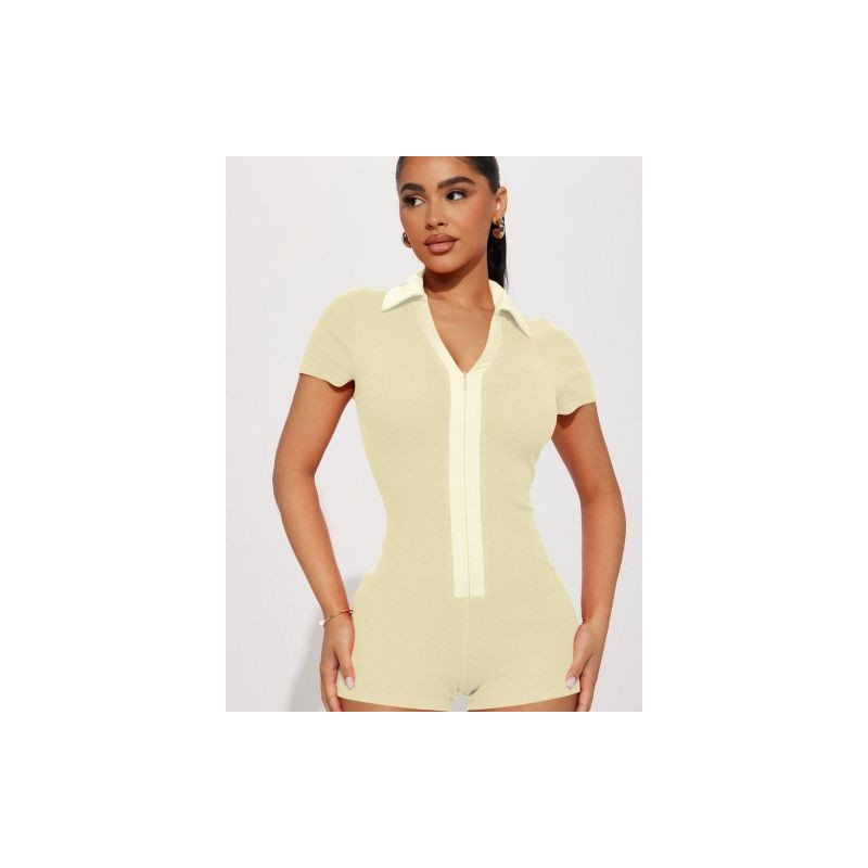 High Street Solid Fitness Rompers Női Jumpsuit Sexy Polo Nyakú, rövid ujjú cipzárral elöl Bodycon One Piece Club Playsuit Y2k
