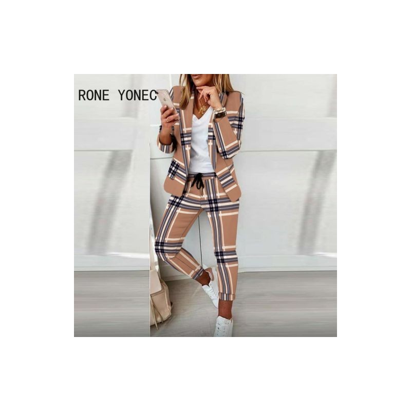 Női munka alkalmi elegáns, hosszú ujjú kabát felsők és ceruzanadrágok alsók tavaszi/őszi vádliig érő nadrág blézer szettek