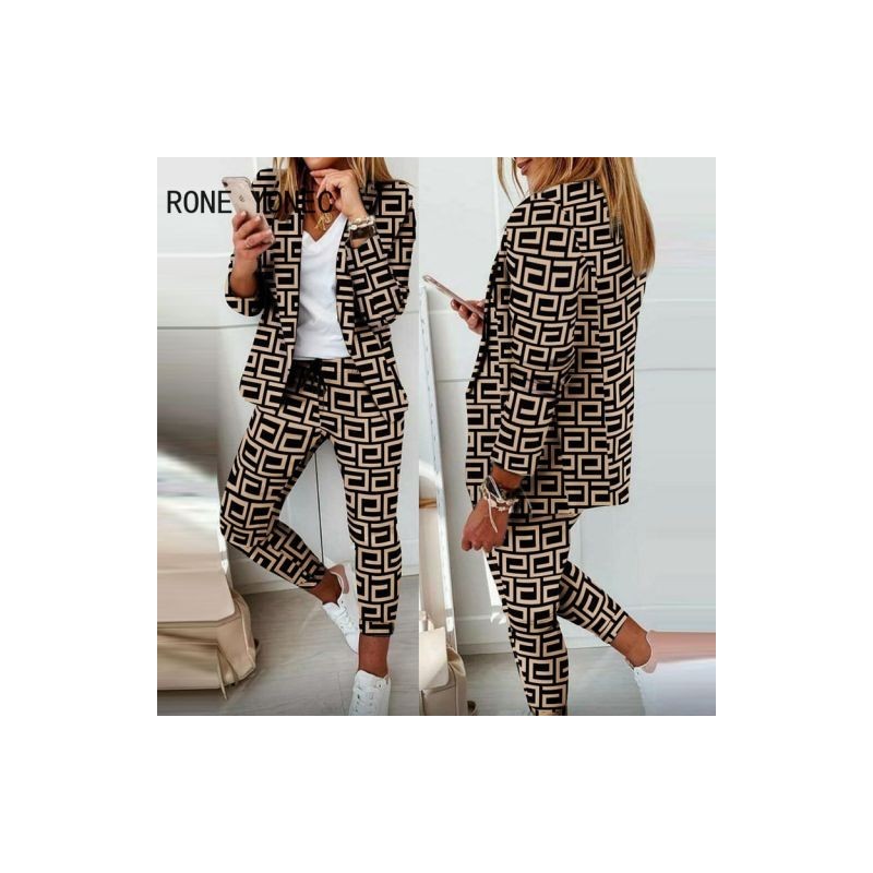 Women Working Casual Elegant Long Sleeves Jacket Tops&pencil pants Bottoms Spring/Autumn Calf-length Pants Blazer Sets