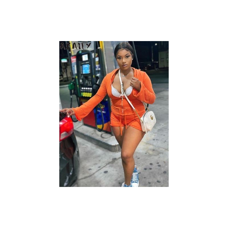 Akaily nyári fehér kapucnis nadrágtartó női Bodycon Jumpsuit 2022 Kiváló minőségű One Pieces Outfit rózsaszín hosszú ujjú, cipzáras játszóruha