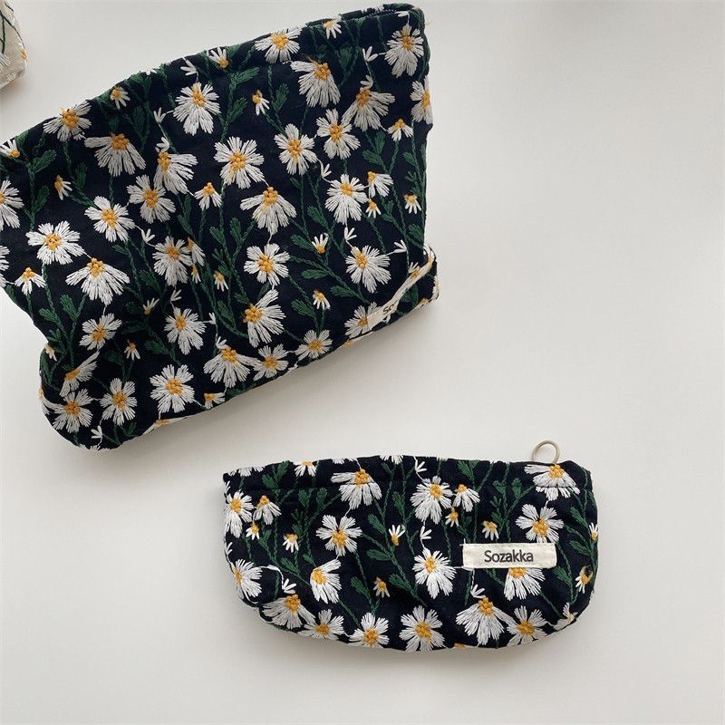 1PCS Small Fresh Makeup Bag Embroidery Flower Cosmetic Bag Female Literature Art Simple Pencil Case Large Capacity Storage Bags