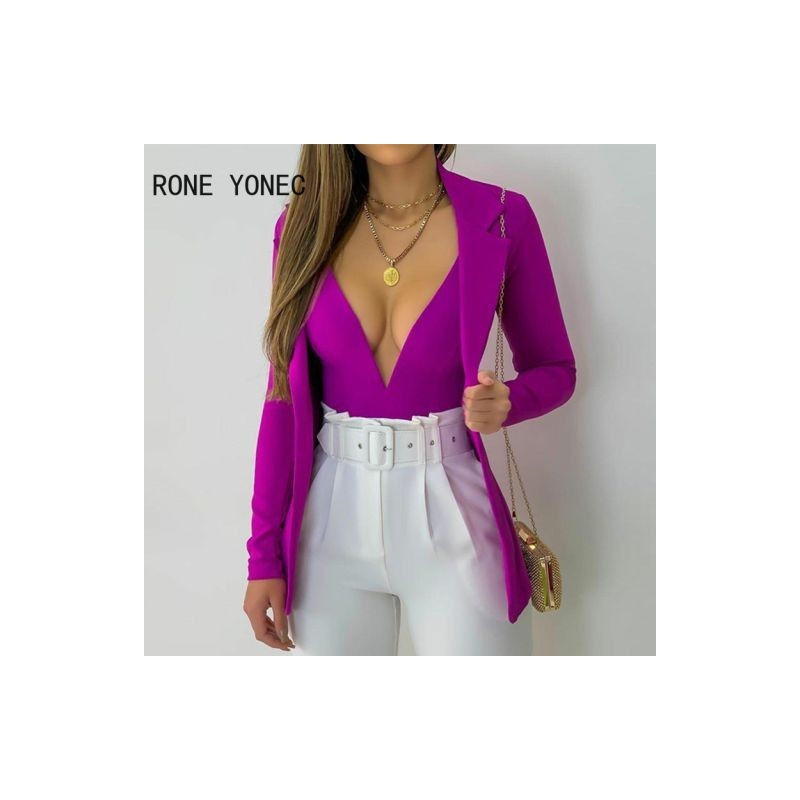 Női Solid Sexy Deep V - nyakú Crop Cardigan hosszú ujjú Bodycon lila blézer szettek