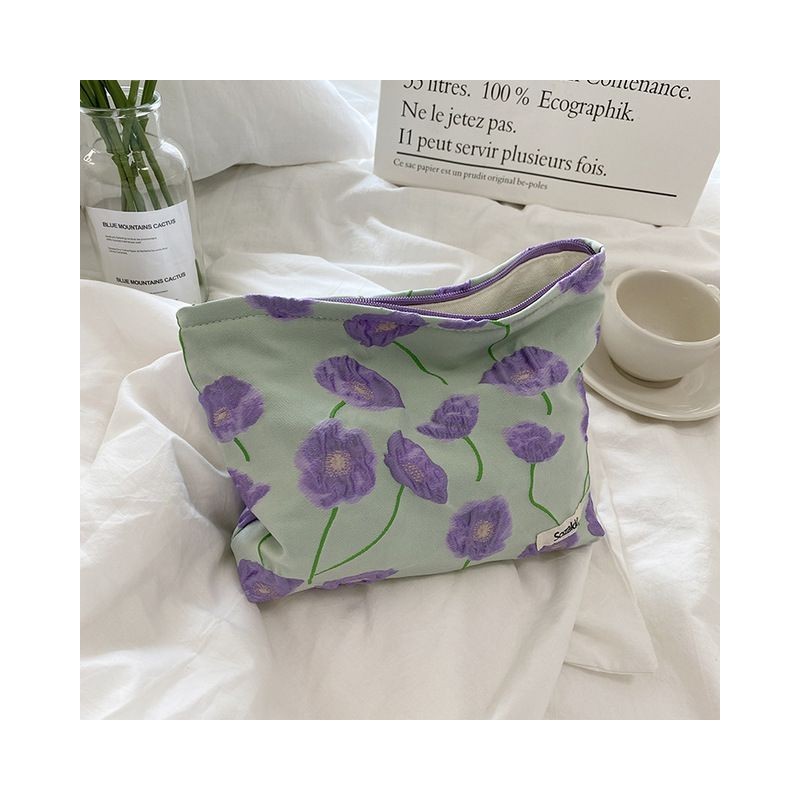 Women Travel Cosmetic Pouch Bag Large Capacity Make Up Storage Bags Fashion Relief Flowers Print Canvas Washing Pouch