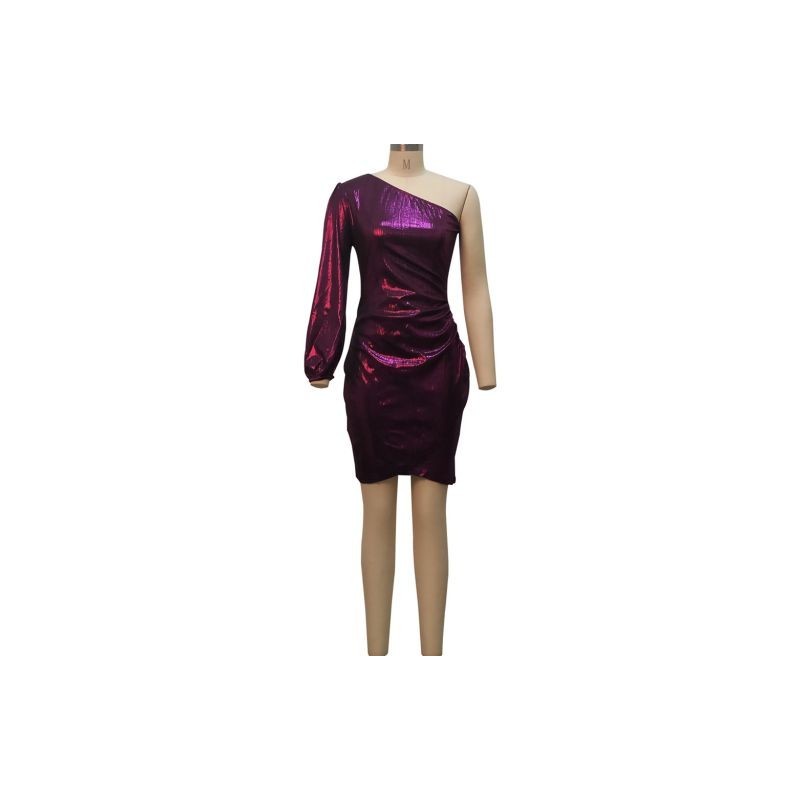 Bronzáló arany, egy váll rovátkolt mini ruha, női, elegáns, teljes ujjú köntös Szexi éjféli klubruházat, bulizás