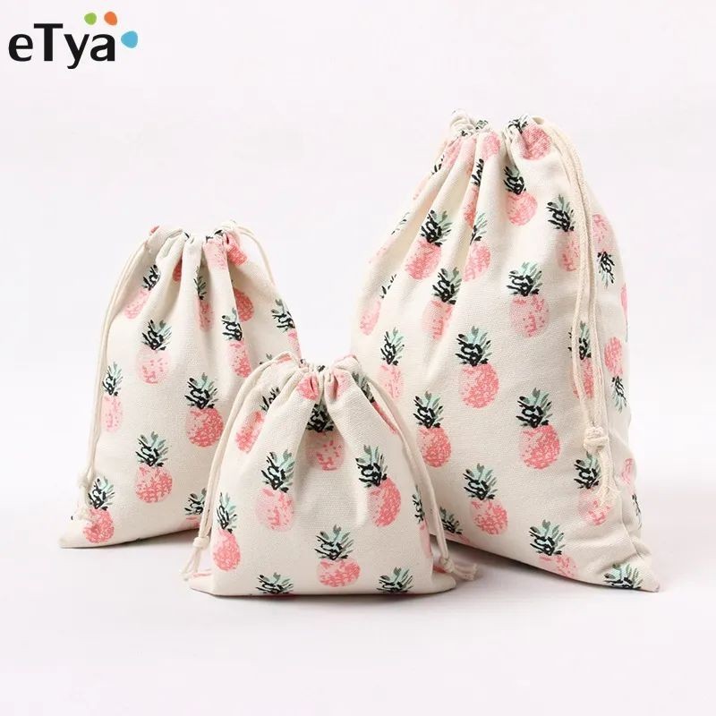 Cotton Drawstring Bag Fruit Pineapple Women Travel Draw String Pouch Eco Friendly Shopping Storage Case