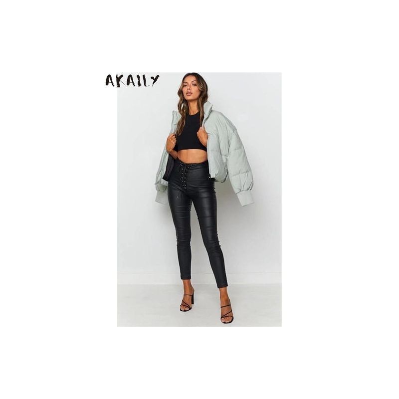 Akaily őszi, téli fekete puffer dzsekik nőknek 2022 bő, hosszú ujjú buborékos téli kabátok női fehér alkalmi steppelt kabátok