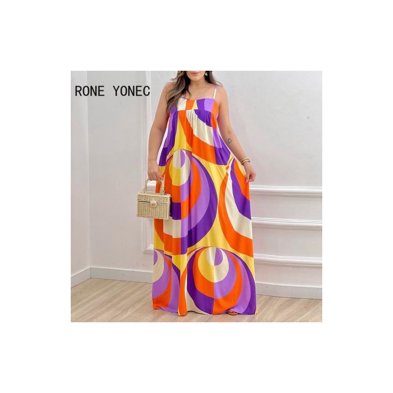 2023-as női szexi spagetti pántok, teljes mintával, ujjatlan, bő maxi nyári vakációs ruhák