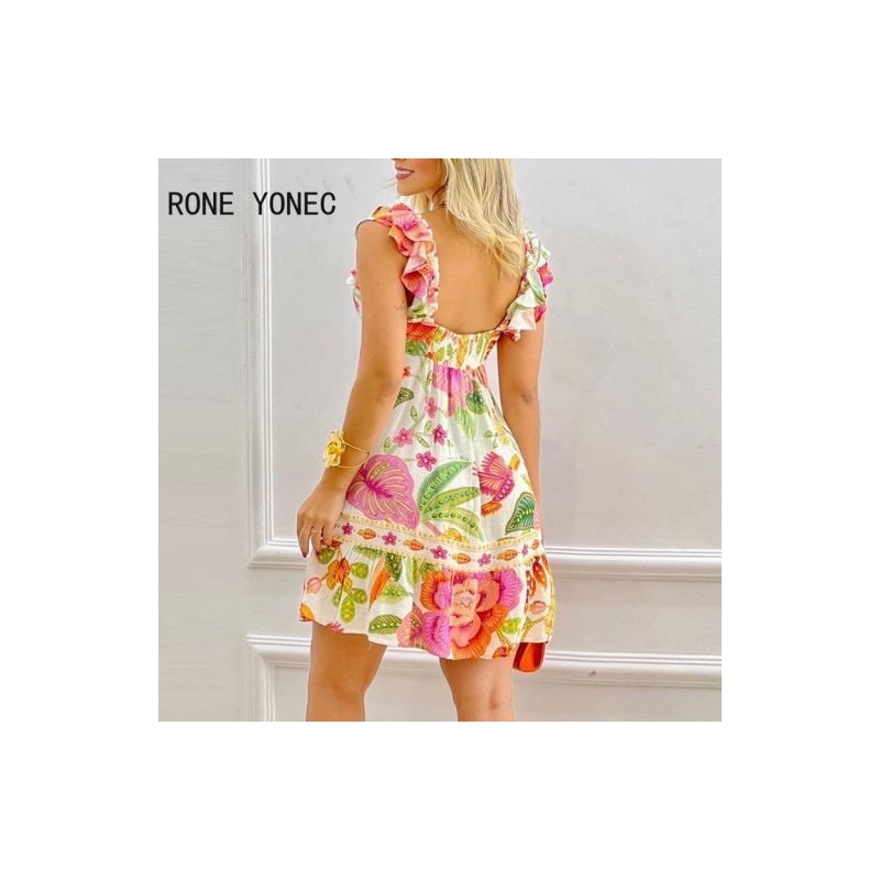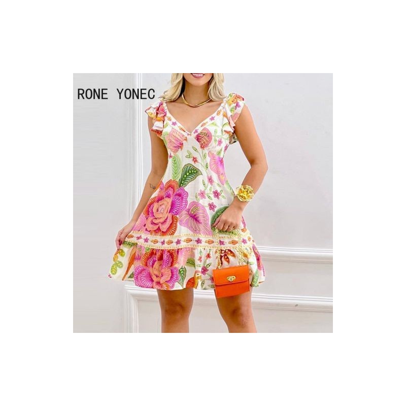 Elegáns, mély V nyakú, fodros ujjú női virágmintás, vonalas alkalmi ruhák